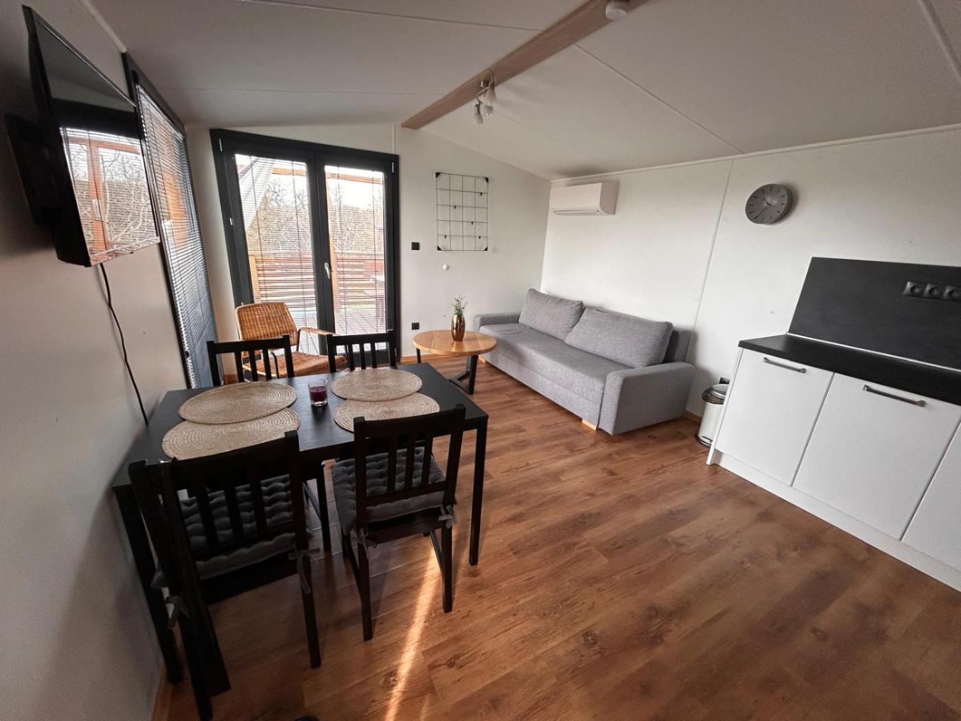 The air-conditioned lodge consists of 2 bedrooms, a living room, a fully equipped kitchen with a fridge and a coffee machine, and 1 bathroom with a shower and a hairdryer. Towels and bed linen are provided in the lodge.