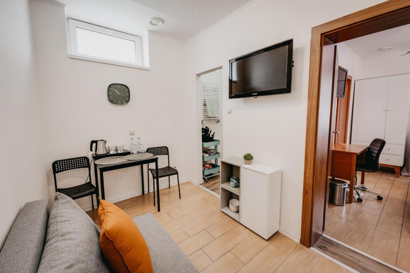 Apartment. This apartment is comprised of 1 living room, 1 separate bedroom and 1 bathroom with a shower and free toiletries. In the kitchenette, guests will find a stovetop, a refrigerator and kitchenware. The apartment features tiled floors, a seating area with a flat-screen TV with cable channels, a minibar, a tea and coffee maker, as well as a dining area. The unit offers 2 beds.
