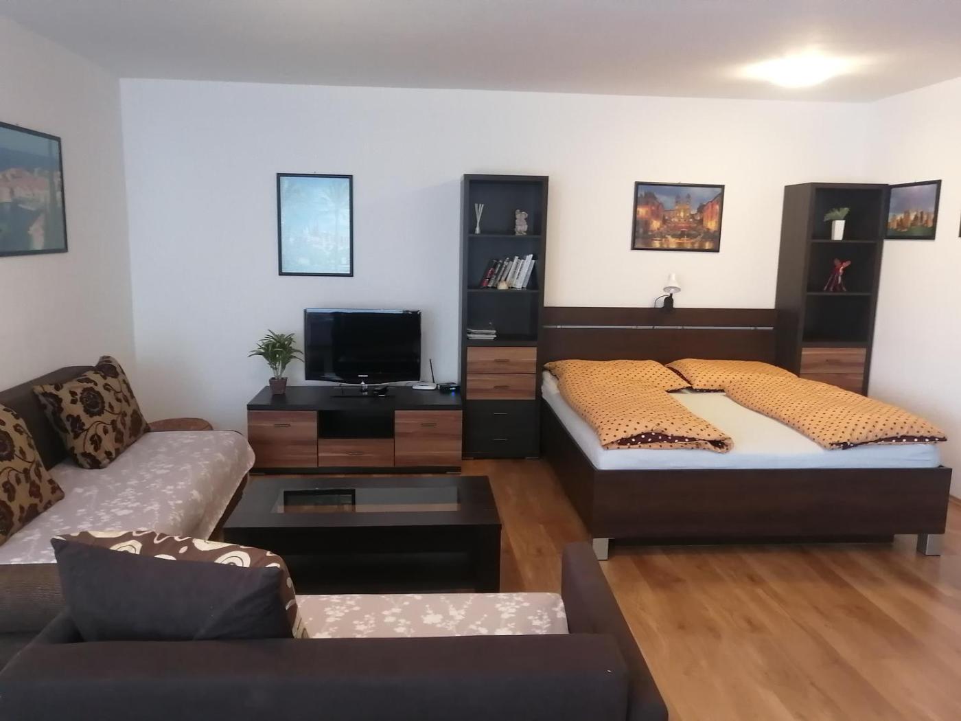 Studio Apartment. This apartment has a kitchen and a sofa bed.