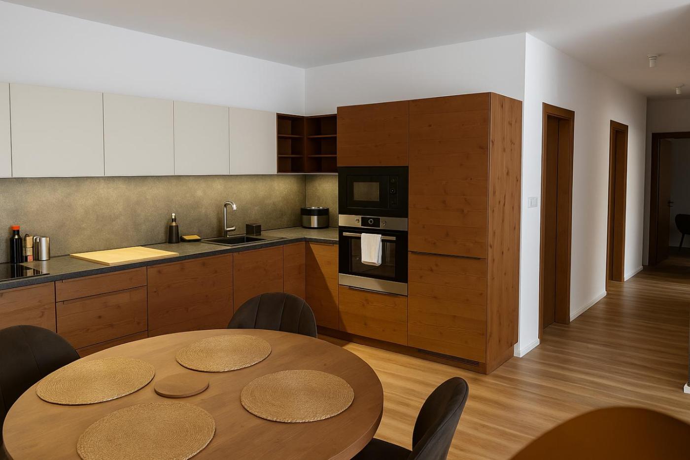 Two-Bedroom Apartment. This apartments standout features are the private pool, hot tub and sauna. This spacious apartment comprises 1 living room, 2 separate bedrooms and 1 bathroom with a shower and free toiletries. The apartments kitchen, which features a refrigerator and kitchenware, is available for cooking and storing food. The air-conditioned apartment provides a flat-screen TV with streaming services, a washing machine, soundproof walls, a coffee machine as well as mountain views. The unit offers 3 beds.