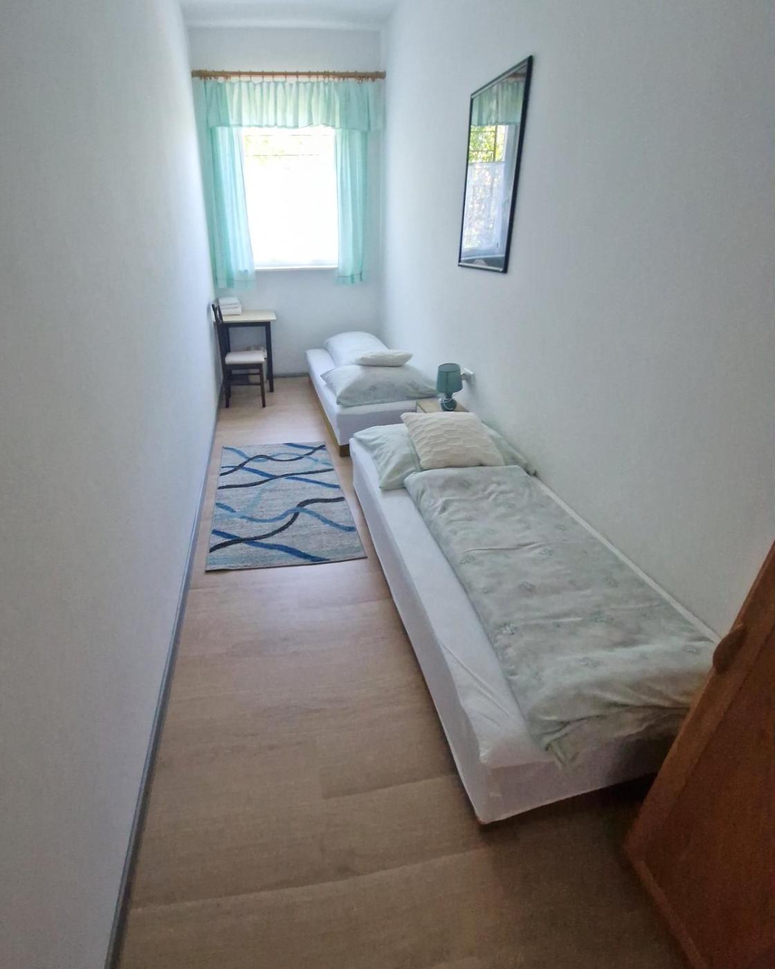 Small Twin Room. Offering free toiletries, this twin room includes a shared bathroom with a walk-in shower, a bath or a shower and slippers. Guests will find a stovetop, a refrigerator, kitchenware and an oven in the kitchenette. The twin room also features a barbecue. Boasting a terrace, this twin room also offers a washing machine, a tea and coffee maker and a TV. The unit has 2 beds. ;